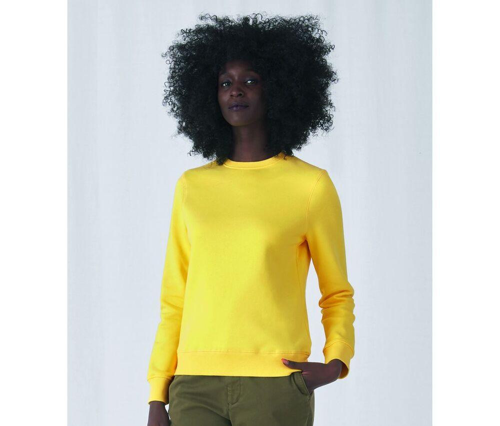 Elegante, luxueuze en comfortabele ronde hals trui. Zij naden. Moderne vrouwelijke snit. Duurzame kwaliteit kraagband. Single Jersey halve maan aan de achterkant. Ultra-zachte 100% katoenen oppervlakte met een perzikachtige huidgevoel. Kras-krassend interieur. Extreme duurzaamheid en comfort dankzij B&C's PST (Perfect Sweat Technology) en continue polyester garen. Geribde boorden, kraag en tailleband. Rechte mouwen.